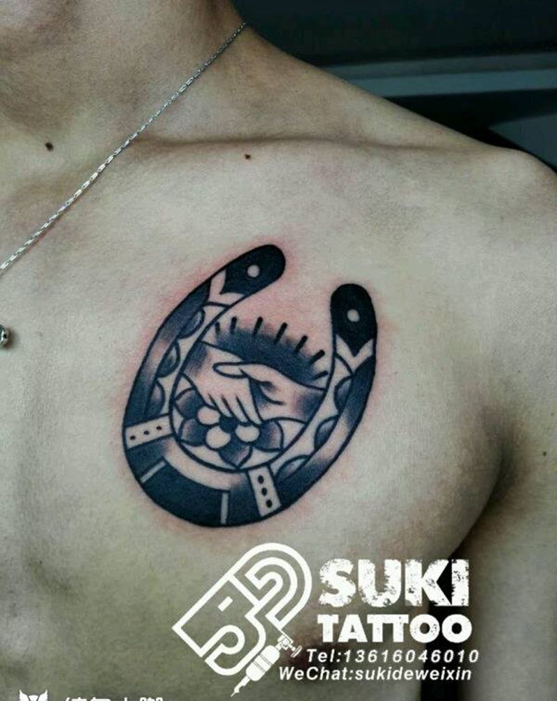 幸运马蹄铁纹身图片_胸部欧美图腾纹身图案