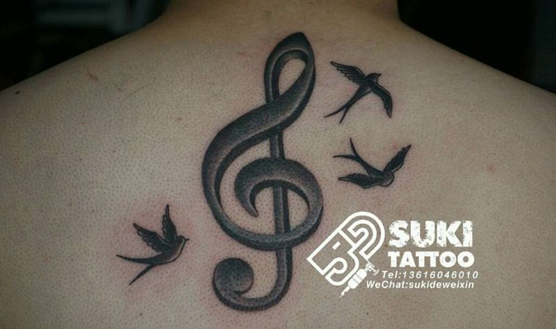 当前位置: 首页 >福建省厦门市纹身店-厦门铭刺青纹身图案>高音符号纹身图片_颈部欧美原创成品纹身图案
