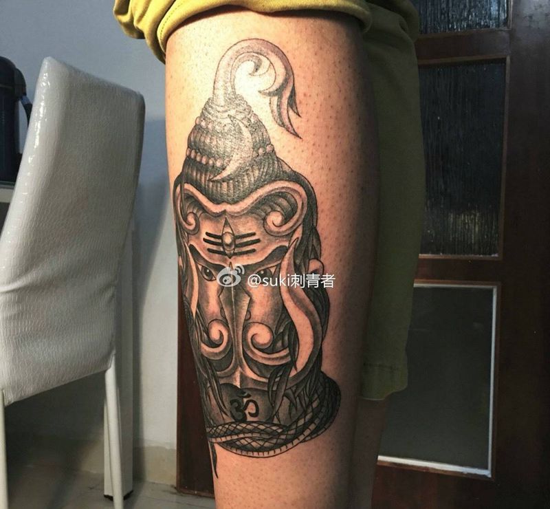 • T包小腿吹火男+阿多福纹身图片_腿部老传统新传统吹火男阿