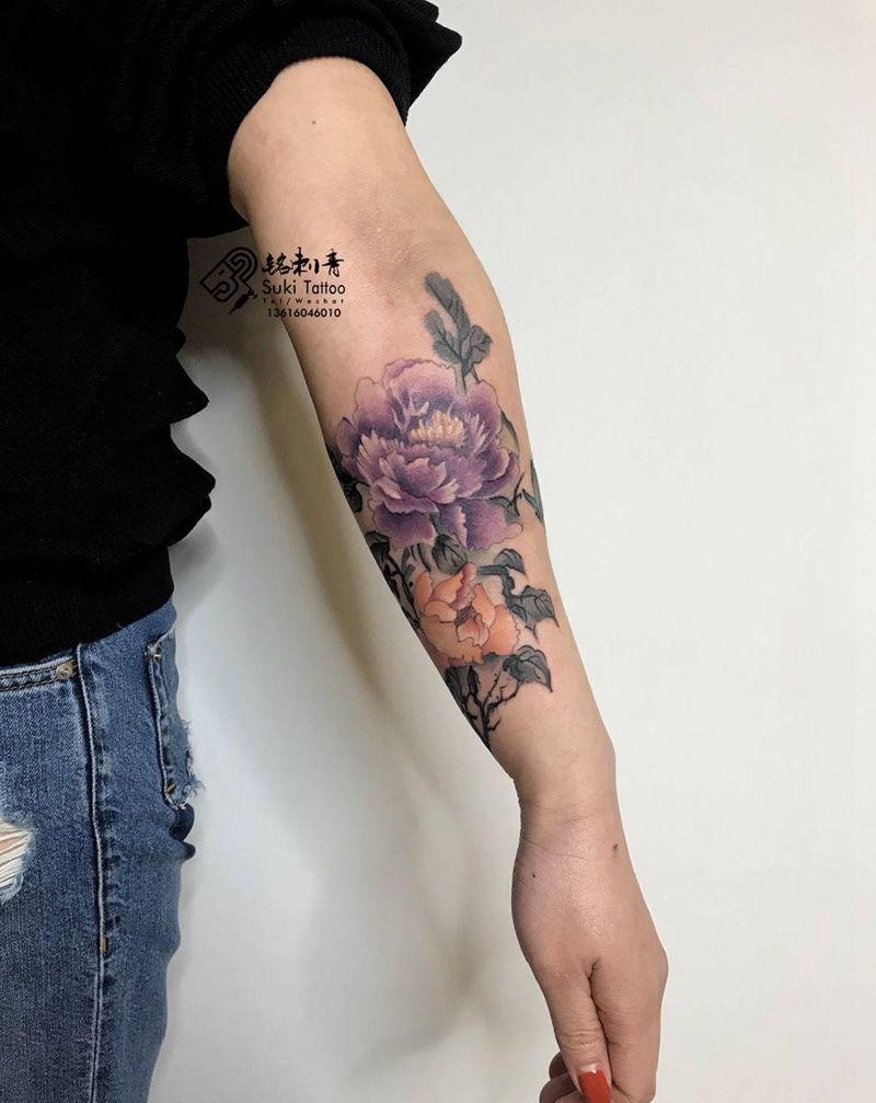 原创牡丹水墨纹身图片