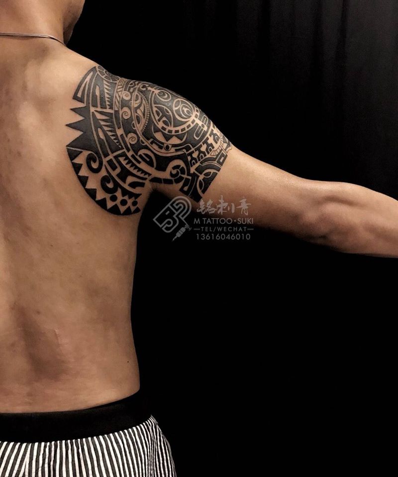 • 纹身吧推荐的披肩图腾半胛纹身图案作品展示