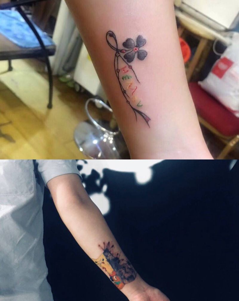 • T家庭图,一家四口生日纪念!纹身图片_手臂纹身图案
