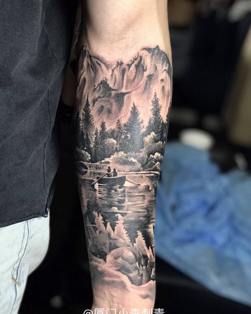 风景如画纹身图片_手臂新传统欧美写实厦门小李刺青纹身图案