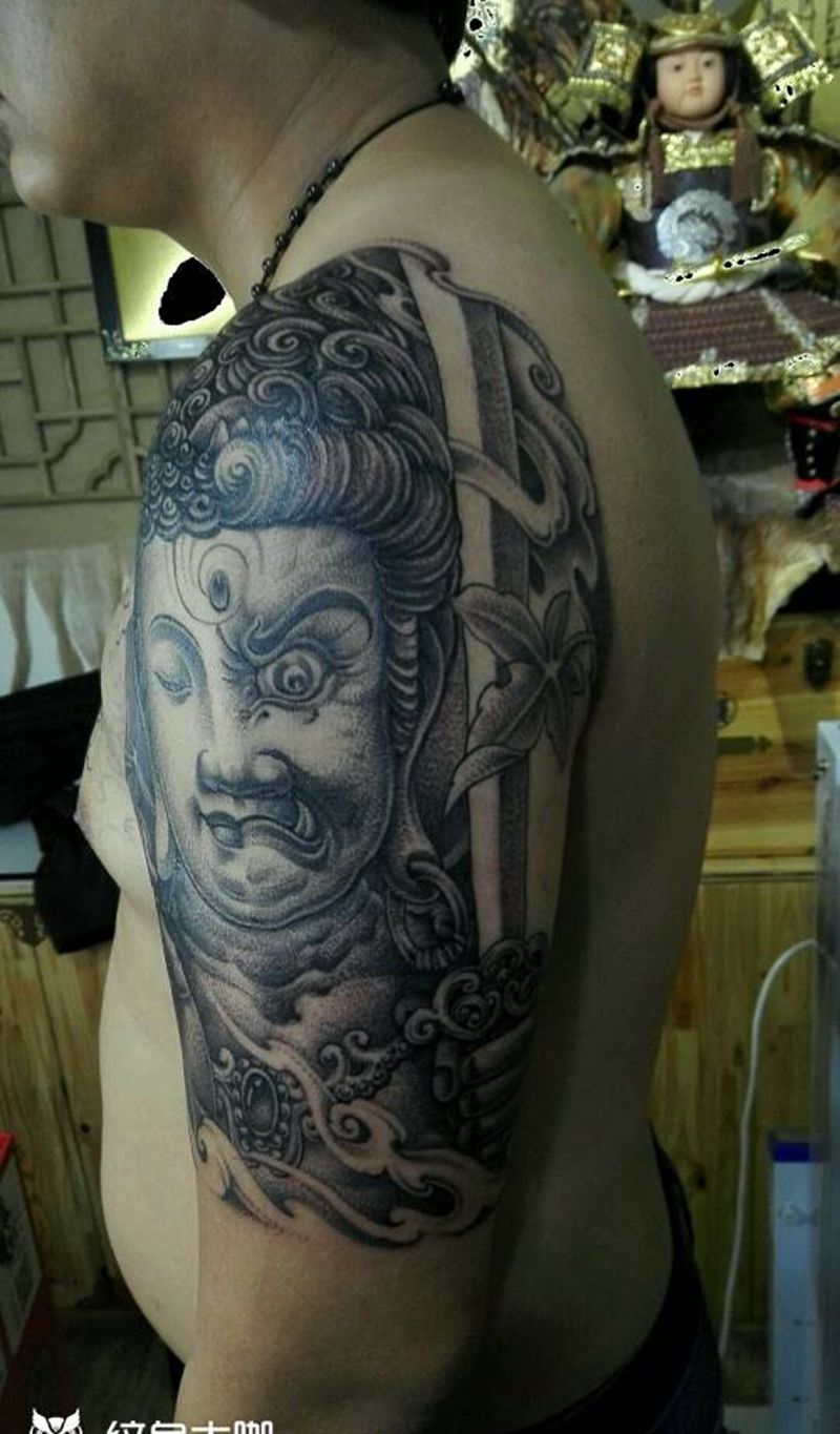 当前位置: 首页 >福建省厦门市纹身店-小李刺青纹身图案>半胛未完成纹身图片_胸部手臂传统肖像人物鬼神半成品厦门福建半胛纹身图案