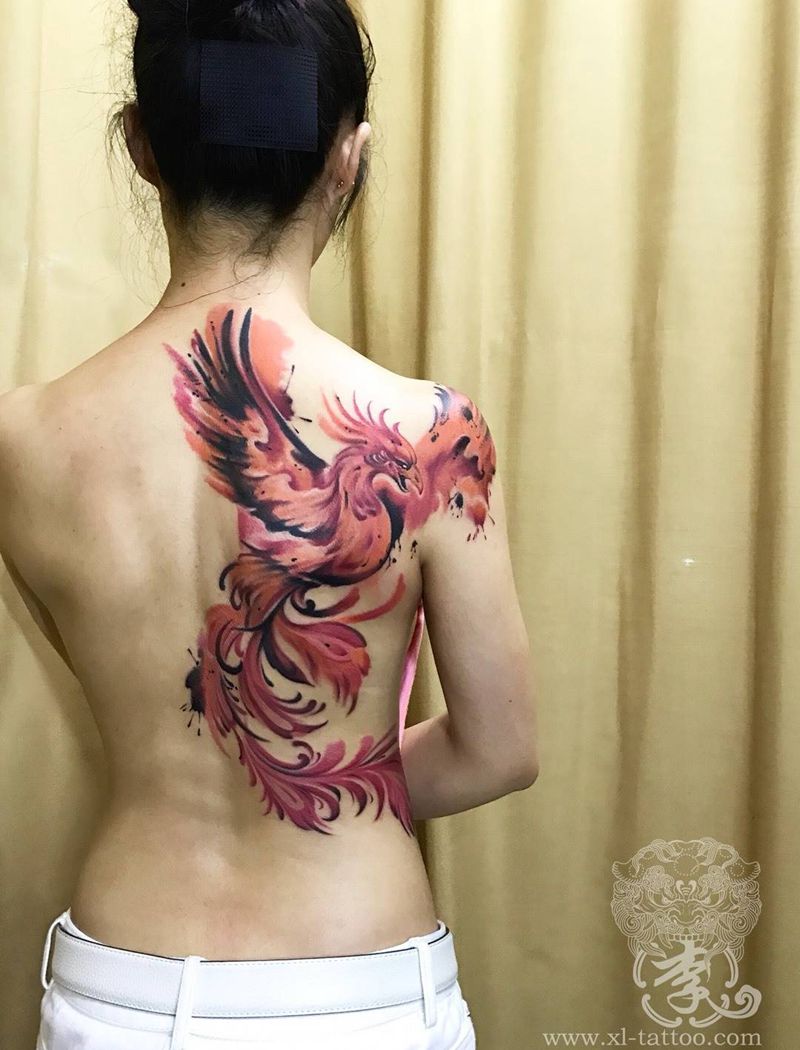 凤凰涅磐纹身图片_成品背部手臂国画清新传统原创鬼神厦门凤凰纹身图案