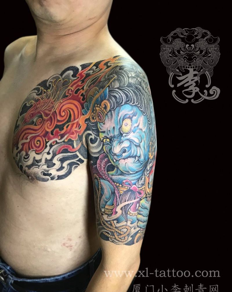 当前位置: 首页 >福建省厦门市纹身店-小李刺青纹身图案>半胛纹身图片_成品手部胸部传统人物宗教原创厦门水墨佛像纹身图案
