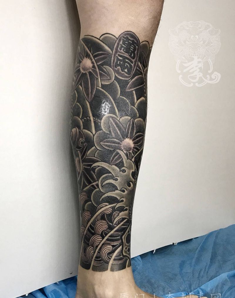 • T网红王老大花腿龙纹身图片_腿部新传统纹身图案