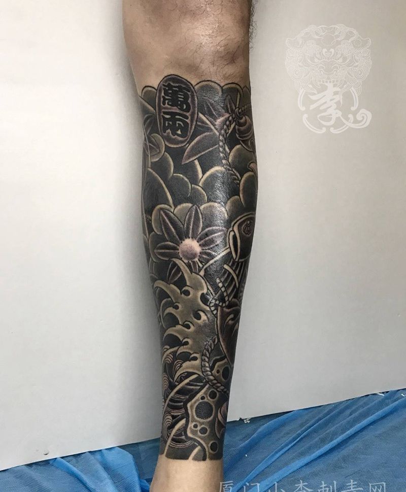 • T网红王老大花腿龙纹身图片_腿部新传统纹身图案