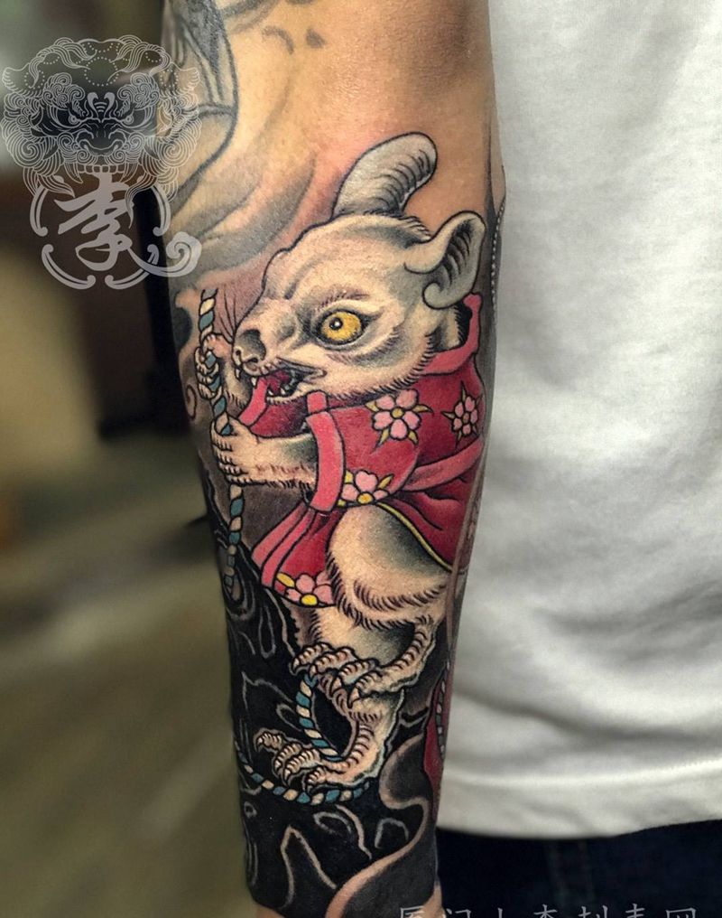当前位置: 首页 >福建省厦门市纹身店-小李刺青纹身图案>老鼠爱上猫纹身图片_成品手部传统清新动物原创厦门手臂水墨鬼神纹身图案