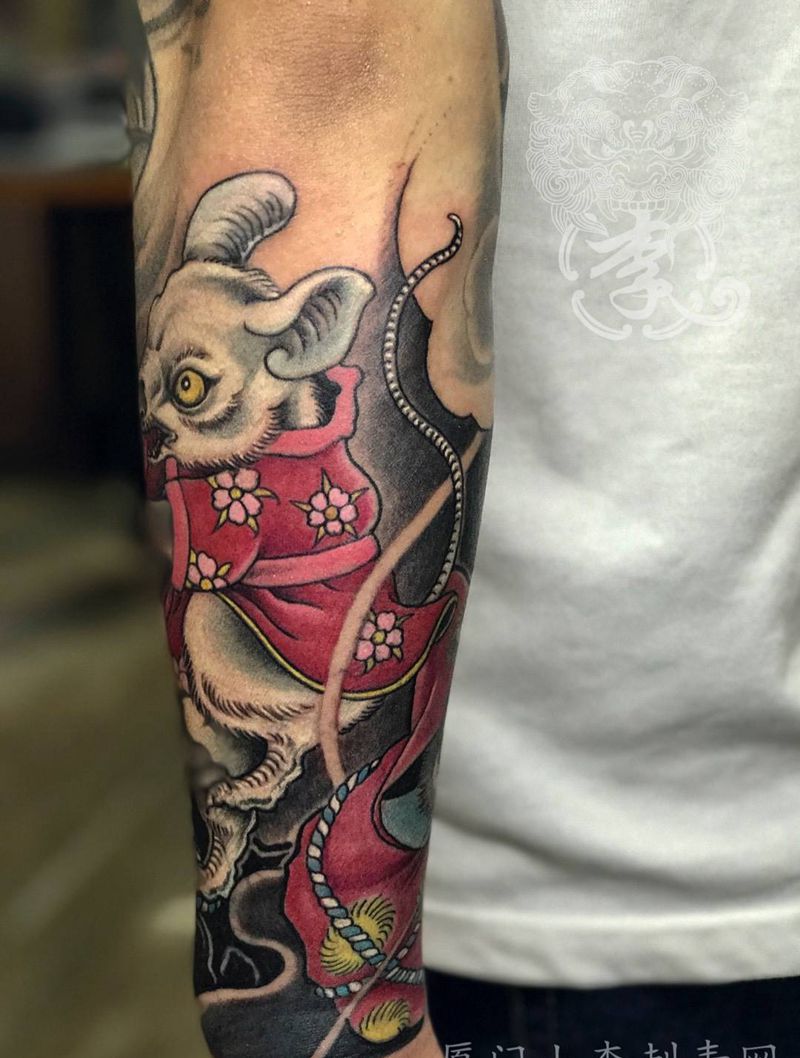 老鼠爱上猫纹身图片_成品手部传统清新动物原创厦门手臂水墨鬼神纹身图案