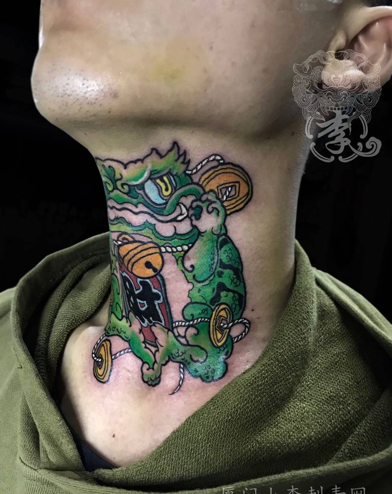 当前位置: 首页 >福建省厦门市纹身店-小李刺青纹身图案>招财蛙纹身图片_成品颈部传统动物厦门水墨佛像美女凤凰鬼神纹身图案
