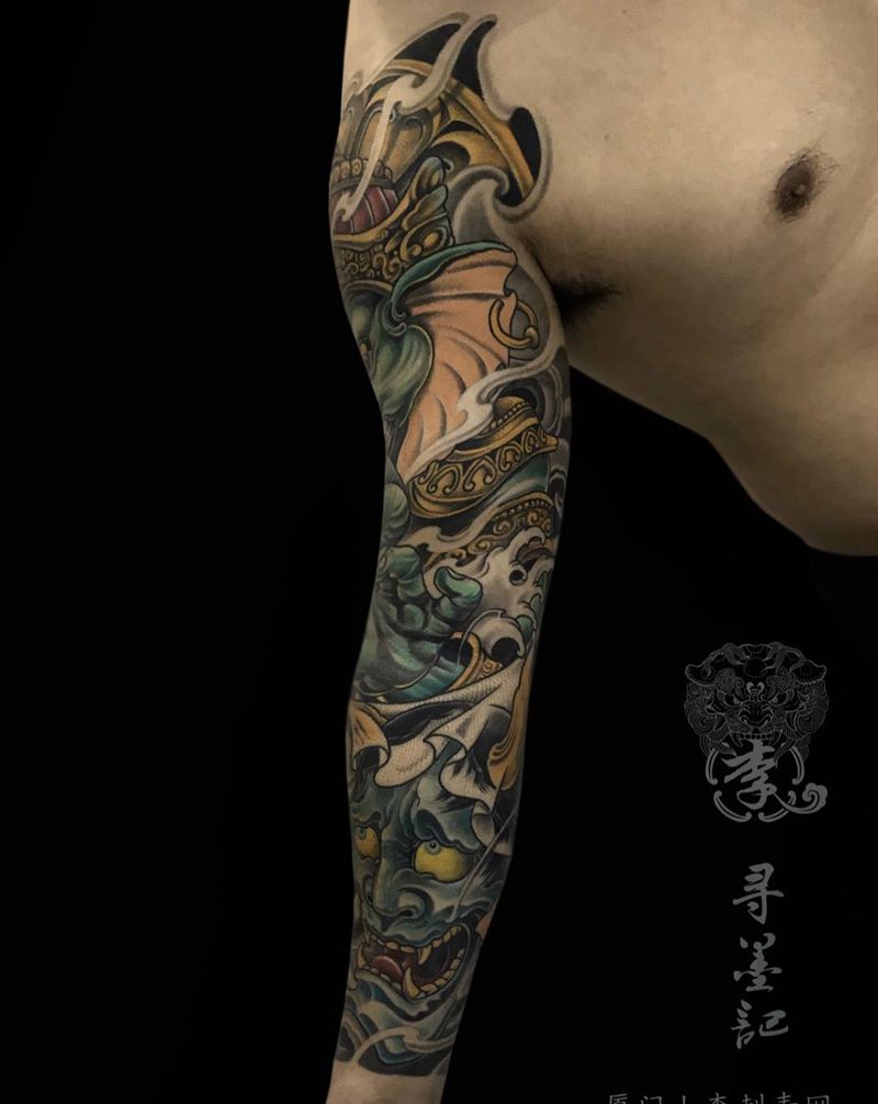当前位置: 首页 >福建省厦门市纹身店-小李刺青纹身图案>花臂象财神纹身图片_成品手臂国画传统人物鬼神宗教厦门水墨原创纹身图案