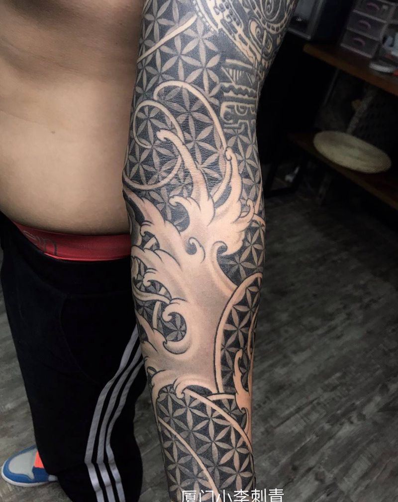 旧图腾加图纹身图片_手臂手部点刺新传统原创花臂小李刺青纹身图案