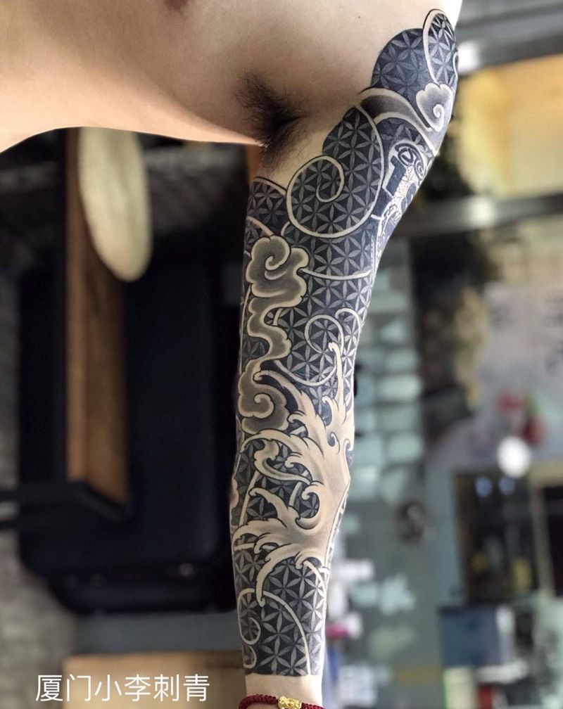 旧图腾加图纹身图片_手臂手部点刺新传统原创花臂小李刺青纹身图案