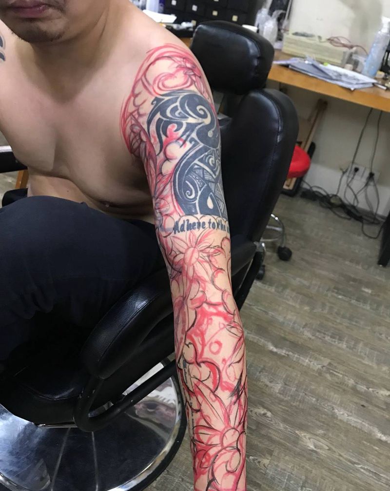 当前位置: 首页 >福建省厦门市纹身店-小李刺青纹身图案>老传统花臂盖图纹身图片_成品手臂传统植物原创鬼神图腾厦门水墨清新纹身图案
