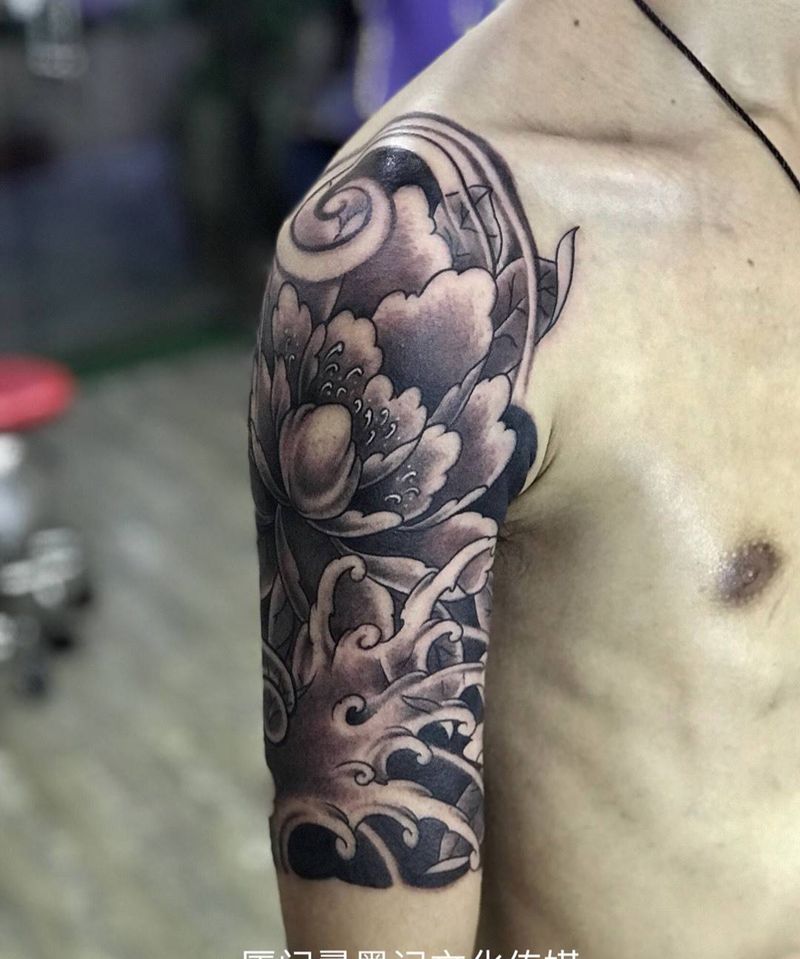 牡丹纹身图片_成品手臂传统清新植物厦门手部纹身图案