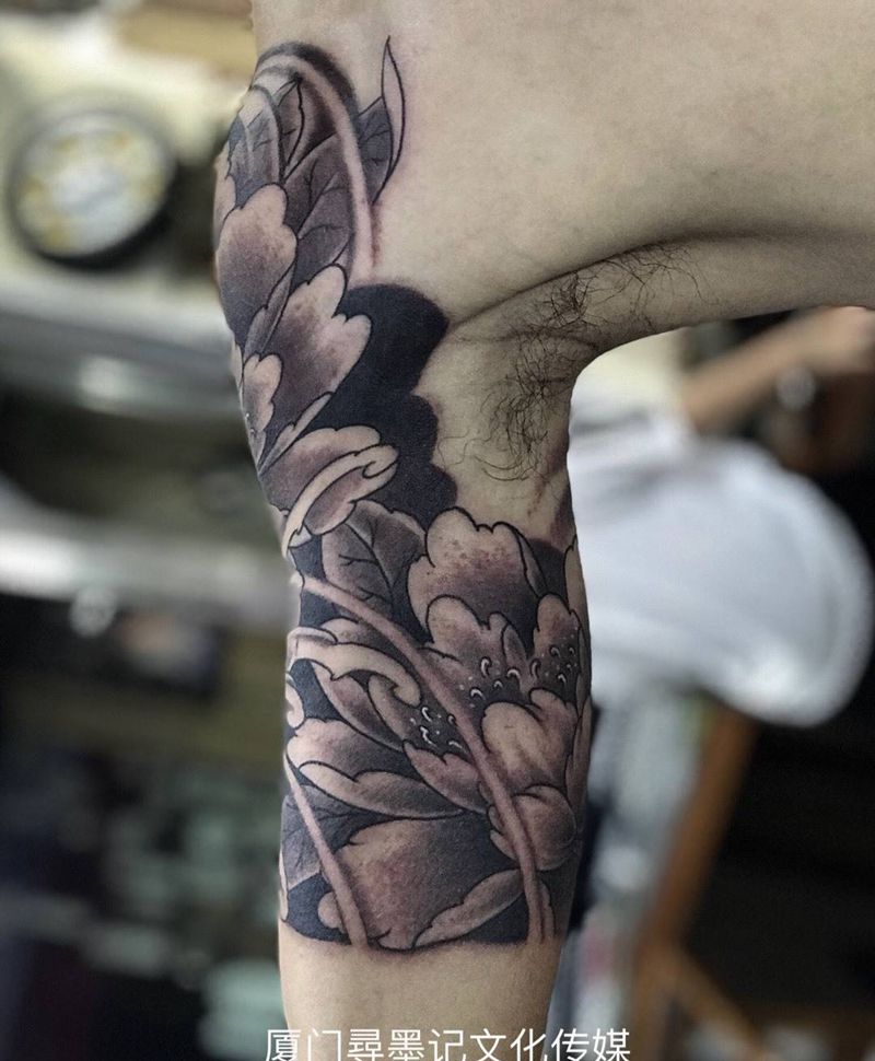 牡丹纹身图片_成品手臂传统清新植物厦门手部纹身图案