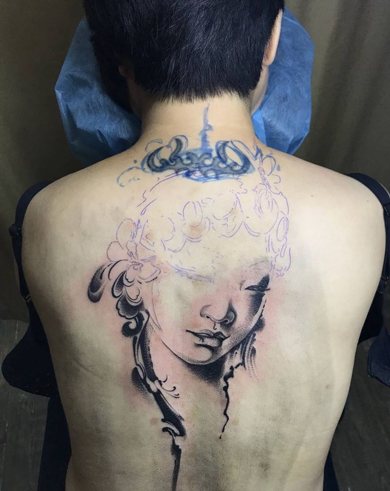 • 黑灰满背纹身图案