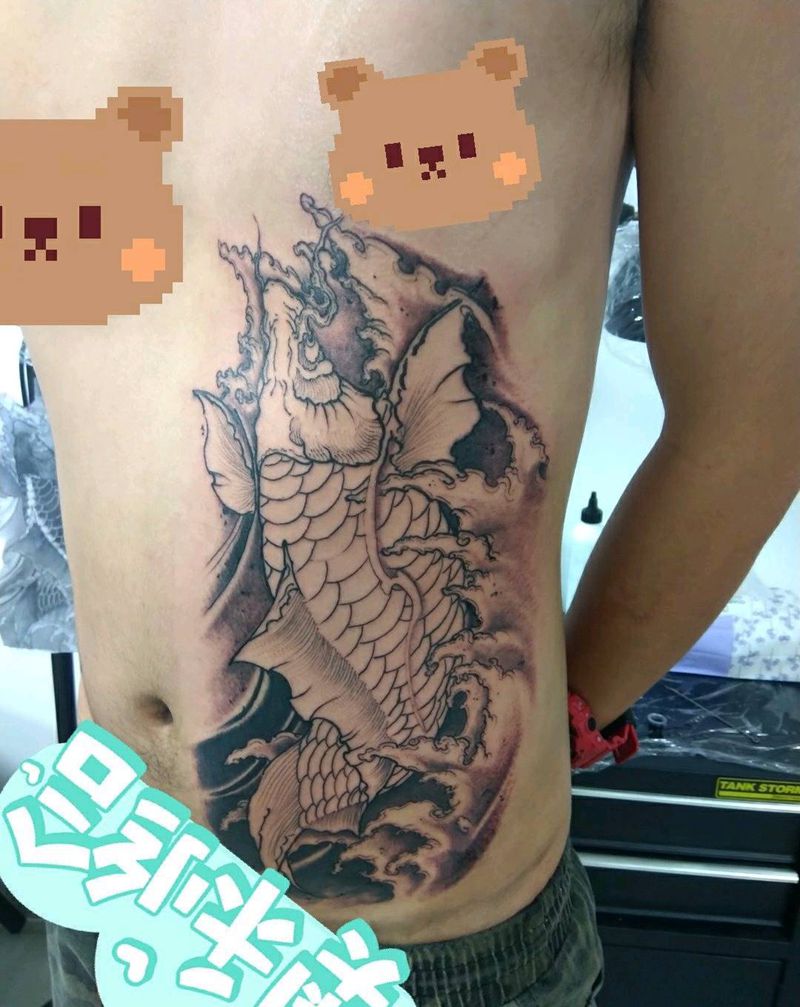 新传统彩色鲤鱼,未完成~第一纹身图片_腹部新传统纹身图案