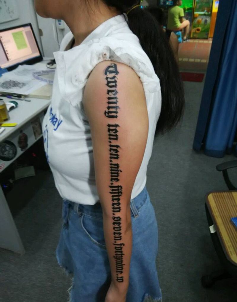 当前位置: 首页 >福建省厦门市纹身店-厦门踢米刺青纹身图案>哥特体英文,超长霸气纹身图片_手臂欧美清新几何字符静物情侣原创成品纹身图案