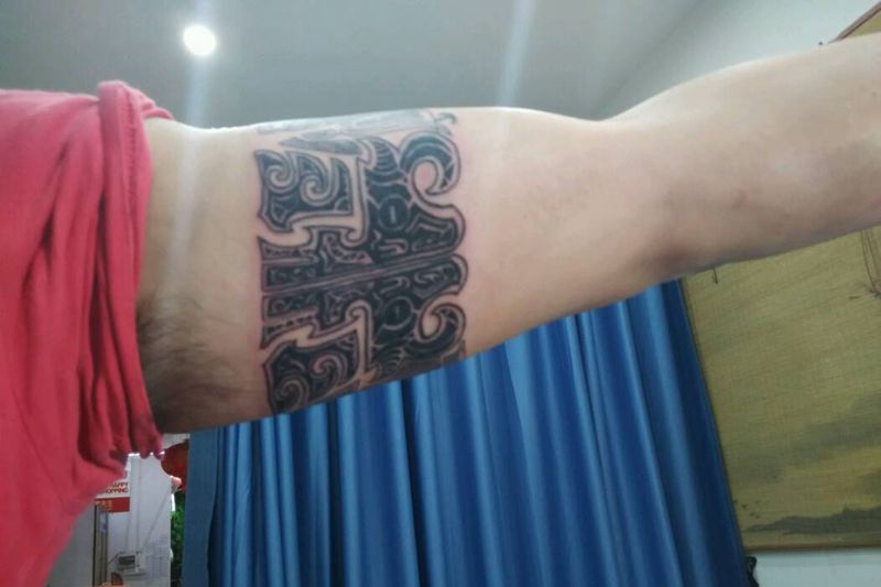当前位置: 首页 >福建省厦门市纹身店-厦门踢米刺青纹身图案>饕餮纹臂环纹身图片_手臂图腾成品纹身图案
