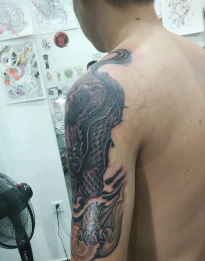• 纹身吧推荐的披肩图腾半胛纹身图案作品展示