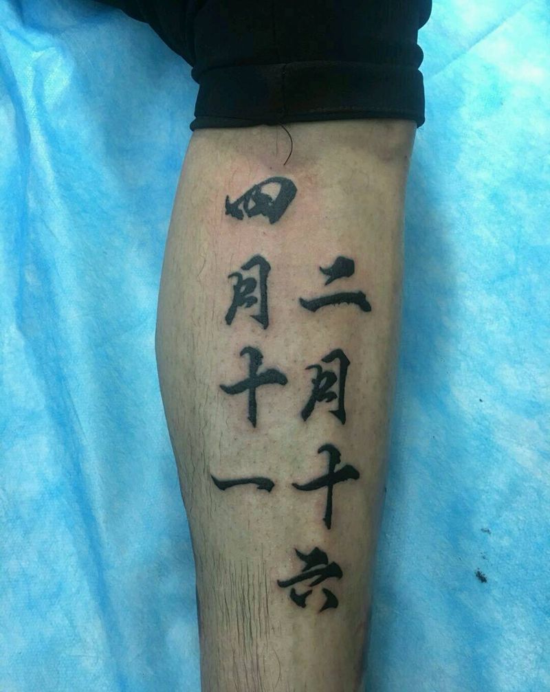 当前位置: 首页 >福建省厦门市纹身店-厦门踢米刺青纹身图案>小腿书法纹身图片_腿部传统习俗国画字符原创成品纹身图案