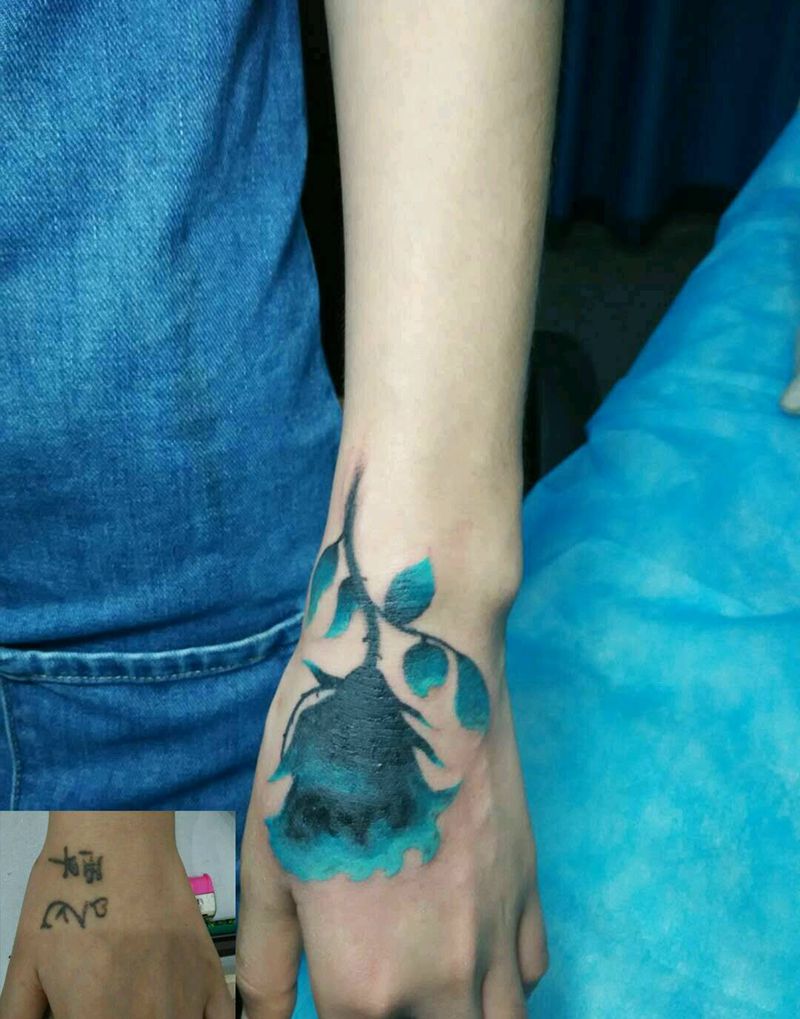 虎口遮盖纹身图片_手部欧美清新植物静物原创成品纹身图案