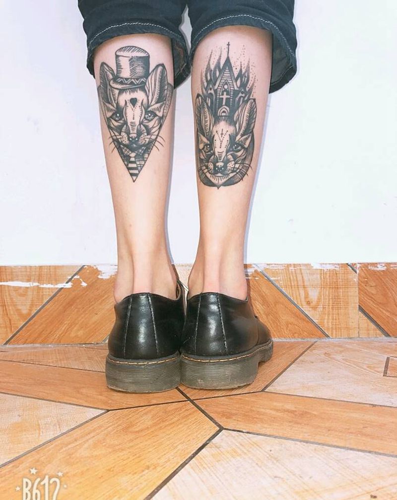 买家秀(恢复一个月后)纹身图片_腿部欧美肖像清新几何动物情侣原创成品纹身图案