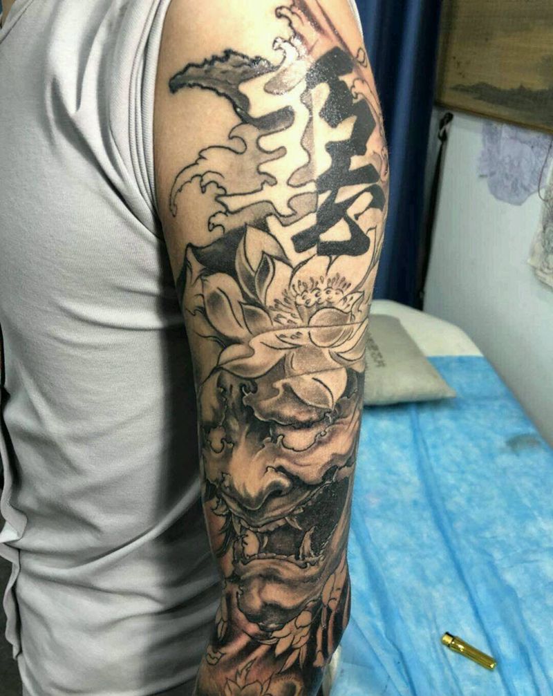 接图花臂,黑灰部分完成纹身图片_手臂传统习俗肖像写实人物鬼神原创成品纹身图案