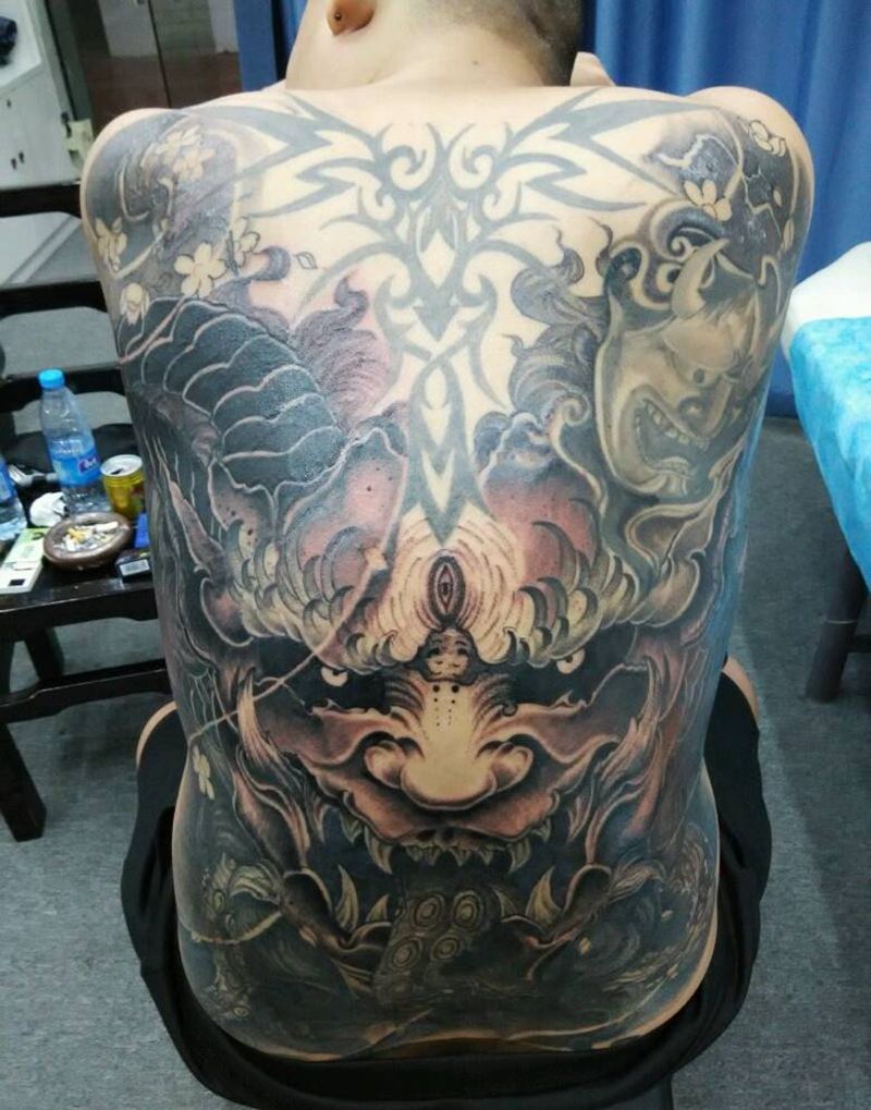 当前位置: 首页 >福建省厦门市纹身店-厦门踢米刺青纹身图案>满背大鬼头遮盖(未完成)纹身图片_背部欧美传统习俗肖像鬼神原创成品纹身图案