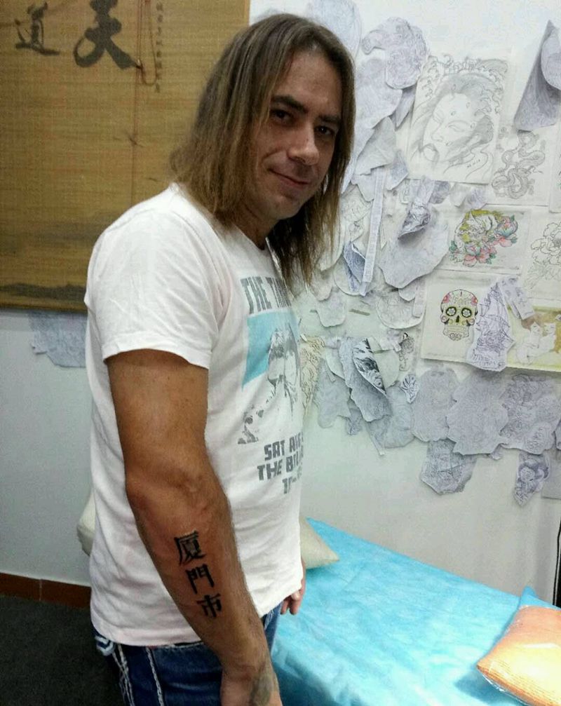当前位置: 首页 >福建省厦门市纹身店-厦门踢米刺青纹身图案>外国友人对中国的爱纹身图片_手臂传统习俗字符原创成品纹身图案