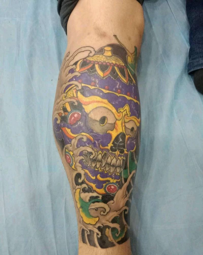 当前位置: 首页 >福建省厦门市纹身店-厦门踢米刺青纹身图案>小腿嘎巴拉完成纹身图片_腿部新传统嘎巴拉纹身图案