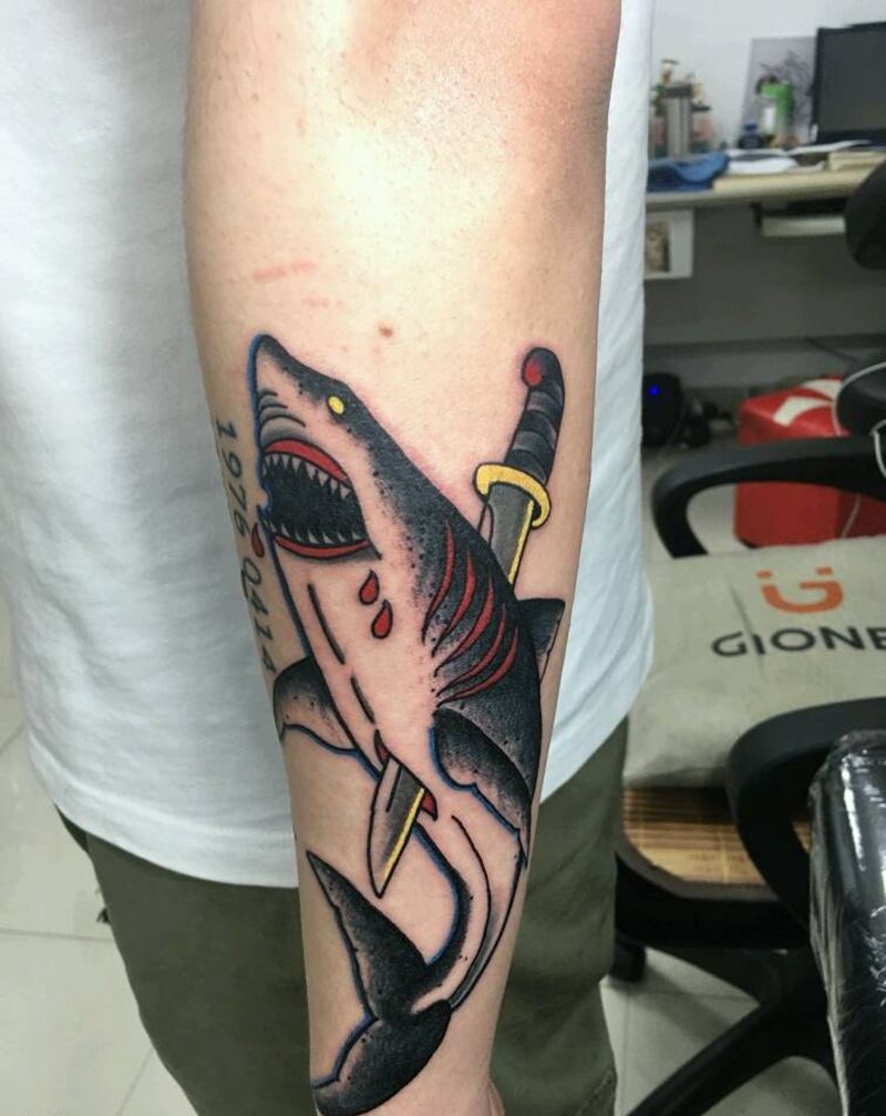 school鲨鱼纹身图片_手臂Old School纹身图案