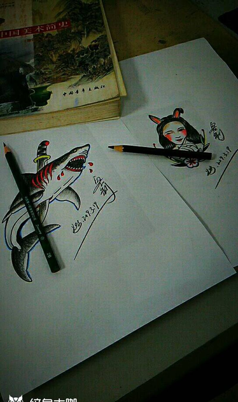 当前位置: 首页 >福建省厦门市纹身店-厦门踢米刺青纹身图案>school鲨鱼纹身图片_手臂Old School纹身图案