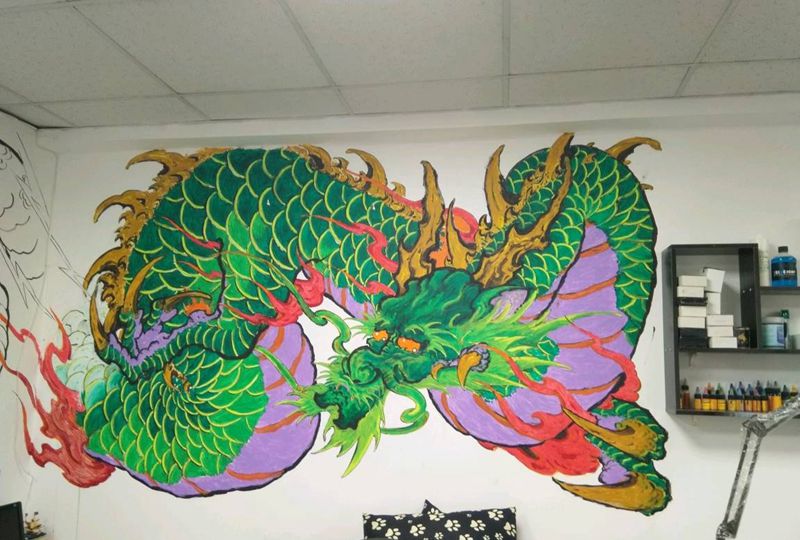 当前位置: 首页 >福建省厦门市纹身店-厦门踢米刺青纹身图案>墙绘半条龙