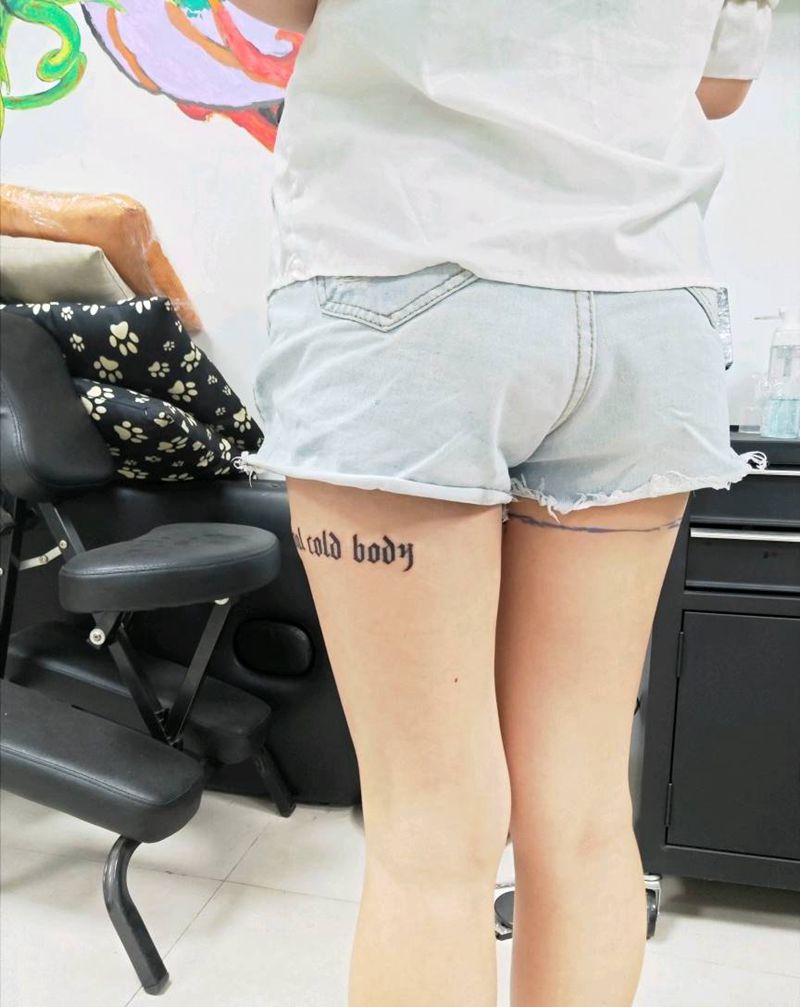 当前位置: 首页 >福建省厦门市纹身店-厦门踢米刺青纹身图案>哥特英文纹身图片_腿部花体字纹身图案