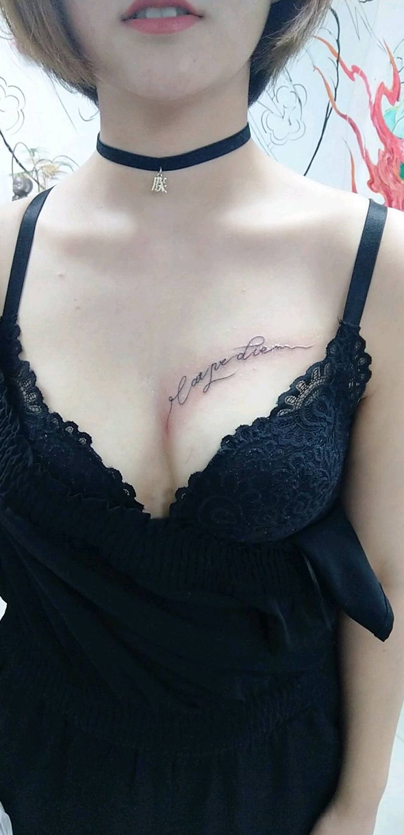 拉丁文纹身图片_胸部花体字纹身图案