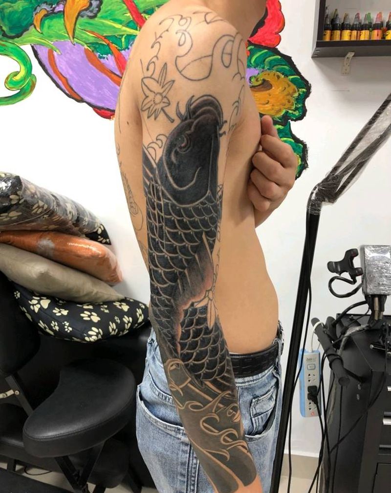 老传统鲤鱼未完成纹身图片_手臂老传统纹身图案