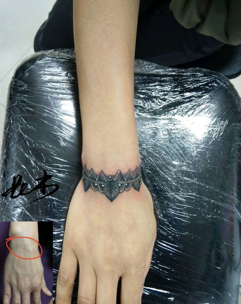 客人带着妈妈过来遮盖陈年疤痕~纹身图片_手部点刺几何纹身图案