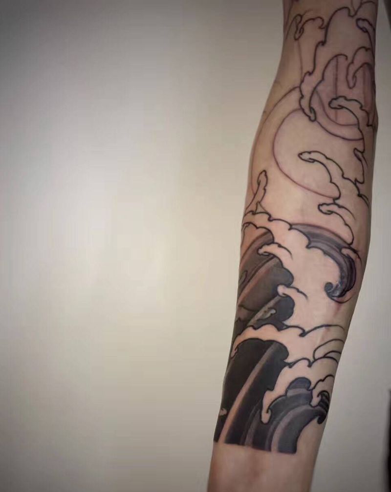 花臂(浪)未完纹身图片_成品手臂传统原创纹身图案