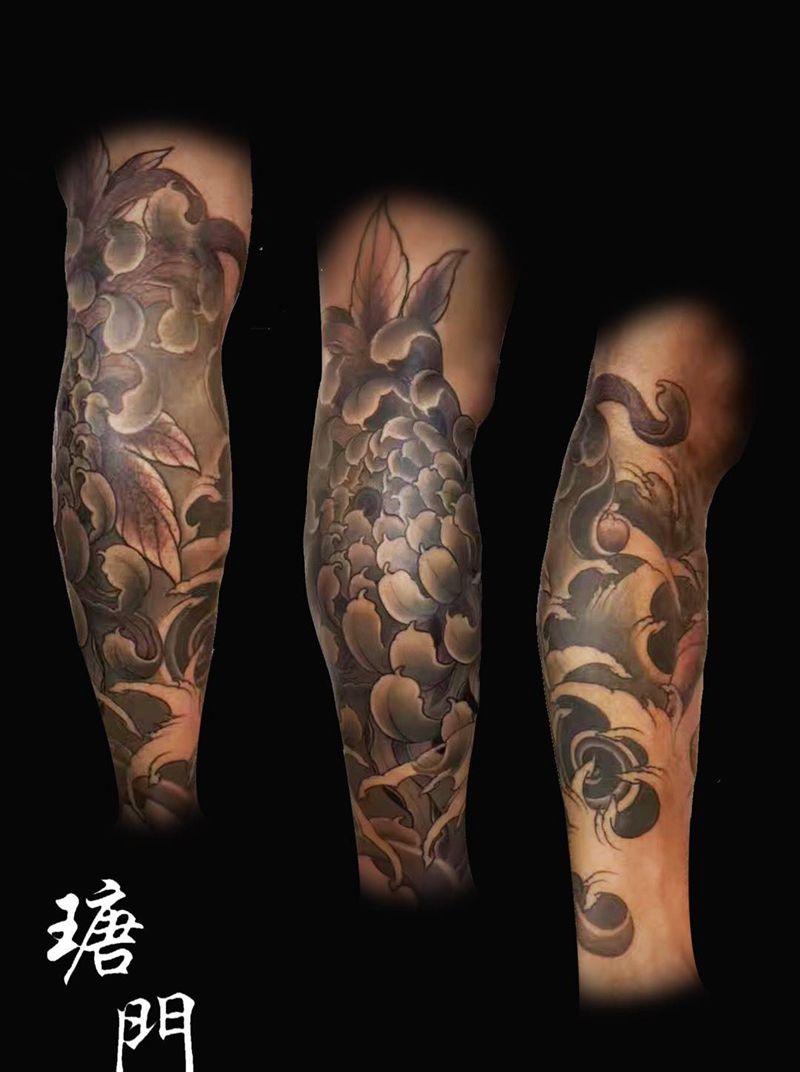 当前位置: 首页 >福建省厦门市纹身店-彫辰刺青纹身图案>菊花包小腿纹身图片_成品腿部传统植物纹身图案