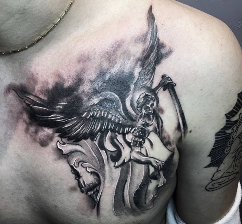 当前位置: 首页 >福建省厦门市纹身店-彫辰刺青纹身图案>遮盖纹身图片_成品胸部欧美纹身图案