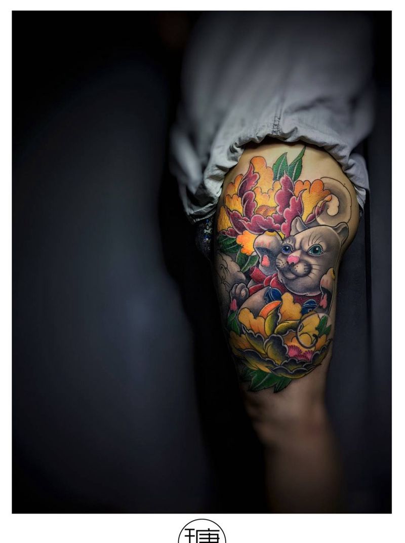 当前位置: 首页 >福建省厦门市纹身店-彫辰刺青纹身图案>招财猫纹身图片_成品腿部传统原创纹身图案