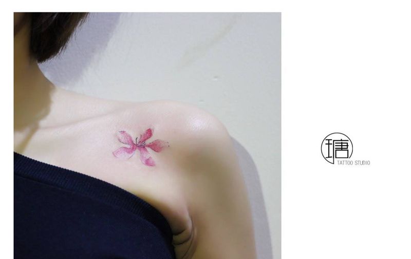 当前位置: 首页 >福建省厦门市纹身店-彫辰刺青纹身图案>樱花纹身图片_成品手臂清新植物纹身图案
