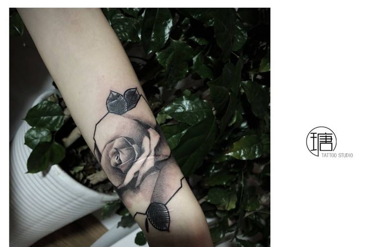 玫瑰纹身图片_成品手臂手稿原创欧美纹身图案