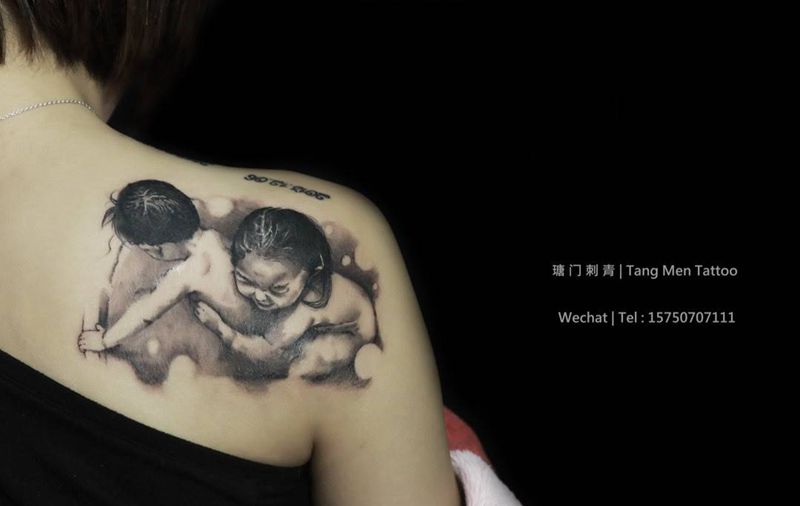 当前位置: 首页 >福建省厦门市纹身店-彫辰刺青纹身图案>两个小可爱纹身图片_成品手稿背部肖像欧美写实原创人物纹身图案
