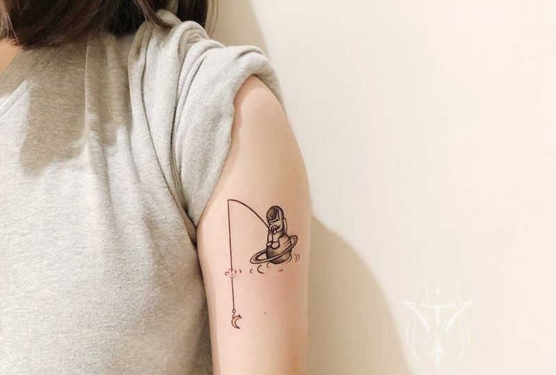 小清新宇航员纹身图片_手臂点刺纹身图案
