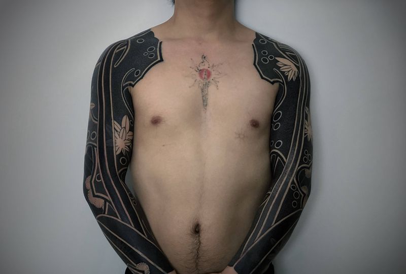 当前位置: 首页 >福建省厦门市纹身店-彫辰刺青纹身图案>满背鱼+双花臂纹身图片_老传统纹身图案
