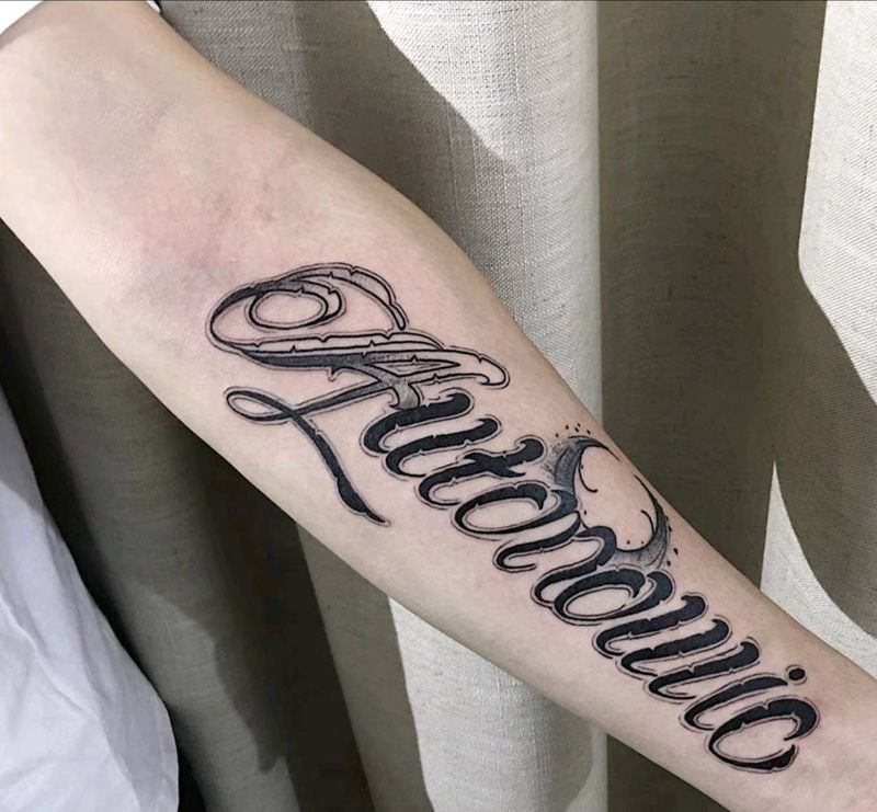 当前位置: 首页 >福建省厦门市纹身店-彫辰刺青纹身图案>花体字 英文纹身图片_手臂花体字纹身图案